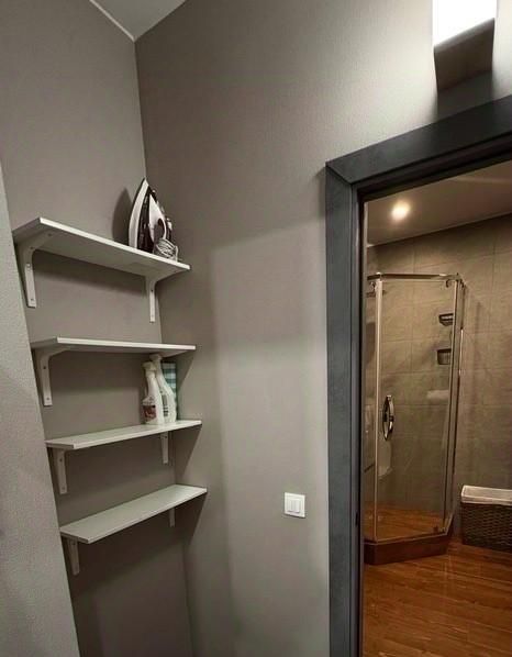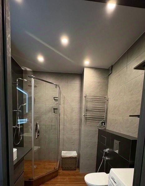 Санузел совмещен:душевая кабина , современная, гигиенический душ,