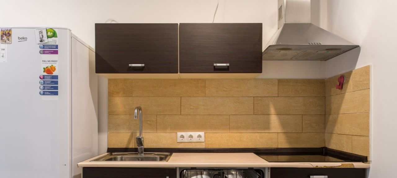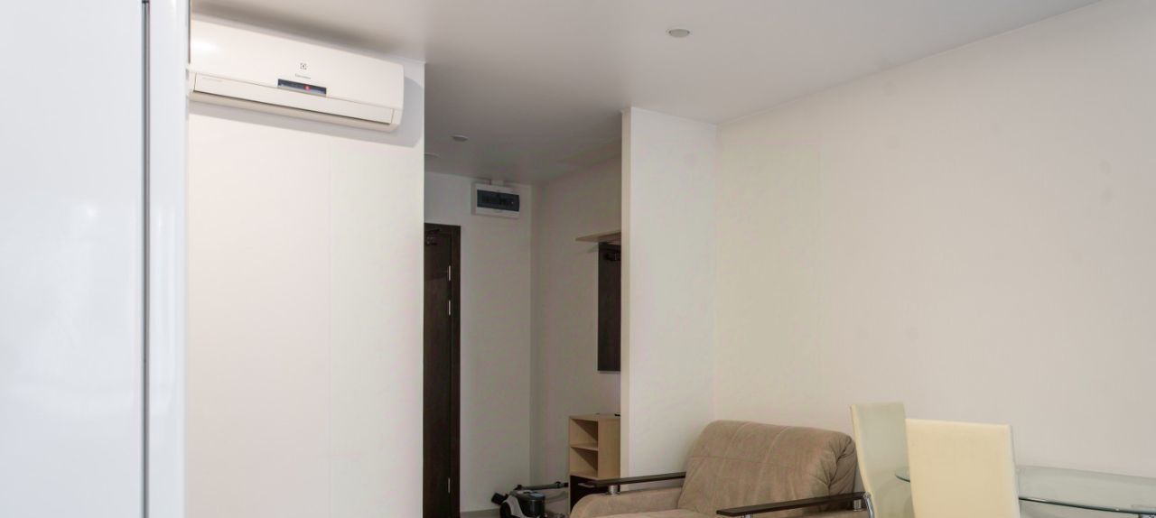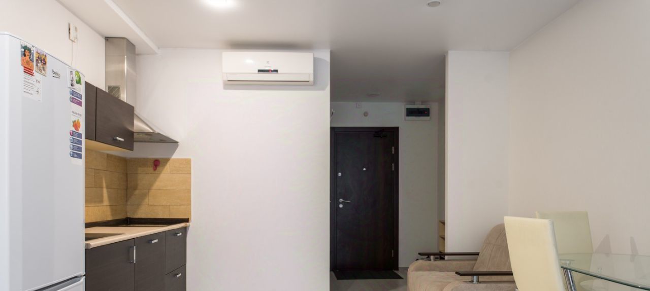 Уютная студия, техника и мебель в хорошем состоянии, в частности посудомоечная машина и кондиционер.