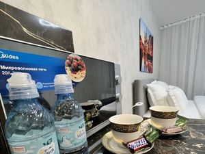 ПЛИТОЙ, микроволновкой, двухкамерным холодильником, чайником, КОМПЛЕКТОМ ПОСУДЫ и обеденным столом. Установлены новые питьевые фильтры для воды;