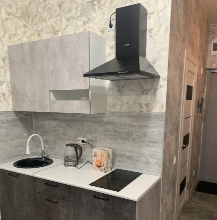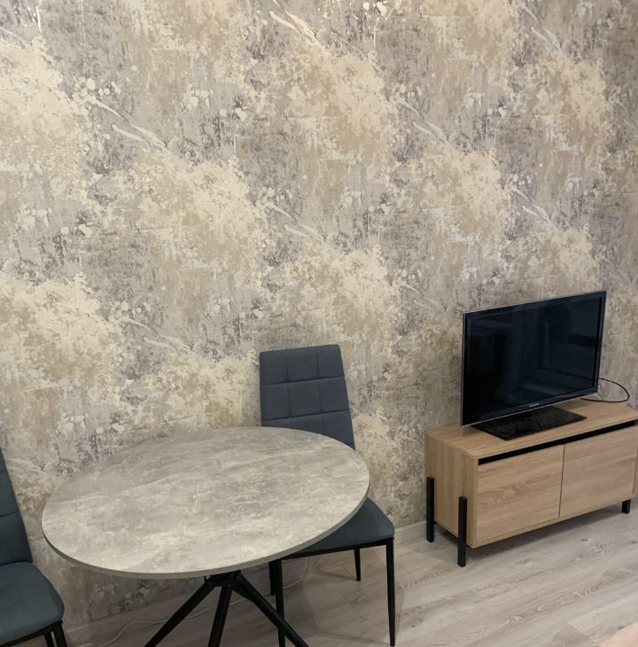 В квартире сделан современный ремонт. Просторная жилая зона площадью 17 кв. м плавно переходит в кухню, которая занимает 10 кв. м. В квартире есть вся необходимая мебель и техника — заезжай и живи. Санузел совмещённый, оборудован качественной сантехникой. Интернет подключён, поэтому можно сразу пользоваться всеми благами цивилизации.