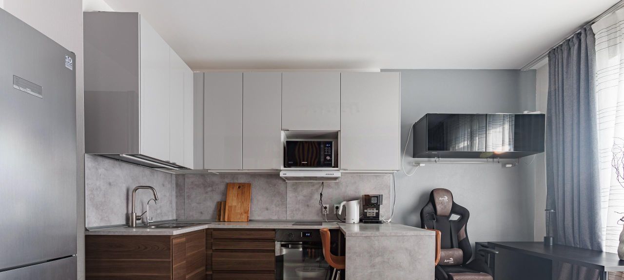 Оборудована мебелью (спальное место: кровать 160х200, рабочая зона у окна с игровым креслом) и качественной бытовой техникой (холодильник bosch, плита, духовой шкаф, микроволновая печь, кофемашина, встроенные 5-ти ступенчатый фильтр для воды, посудомоечная машина bosch, эл. чайник, гладильная доска, пылесос, утюг, стиральная машинка bosch). Большая и вместительная зона хранения вещей в коридоре. Просторный балкон для наблюдения за красивыми закатами летом.