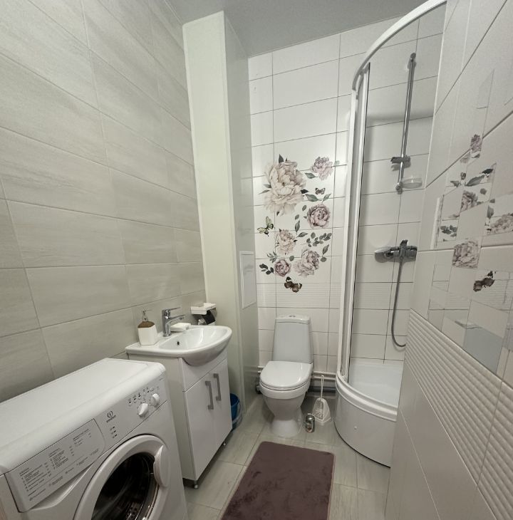Холодильник, стиральная машина, чайник, микроволновая печь. Окна выходят во двор, есть лоджия.