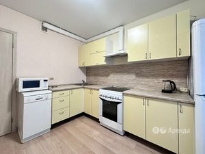 Оснащение: диван раскладной 2 шт., шкаф для одежды, стол, 2 стула; кухонная мебель, варочная поверхность, вытяжка, микроволновая печь, холодильник, стол барный, стулья барные 2 шт.; в коридоре - шкаф для одежды и обуви, санузел совмещенный, здесь - душевая кабина, стиральная машина.