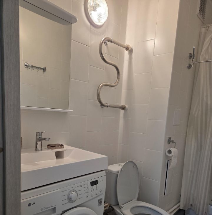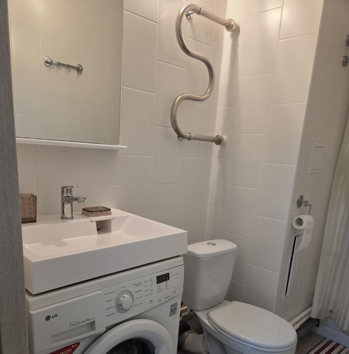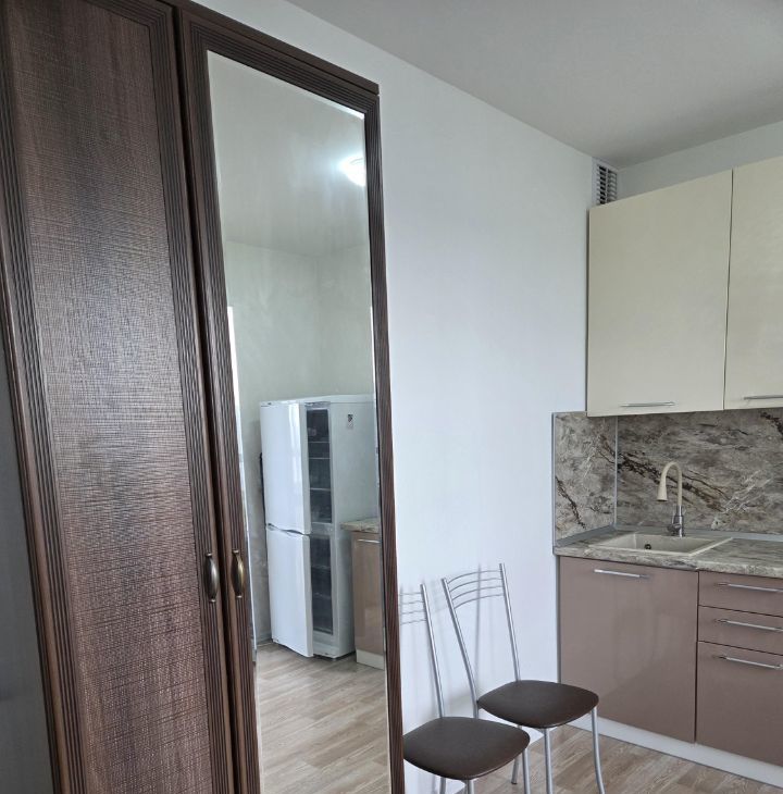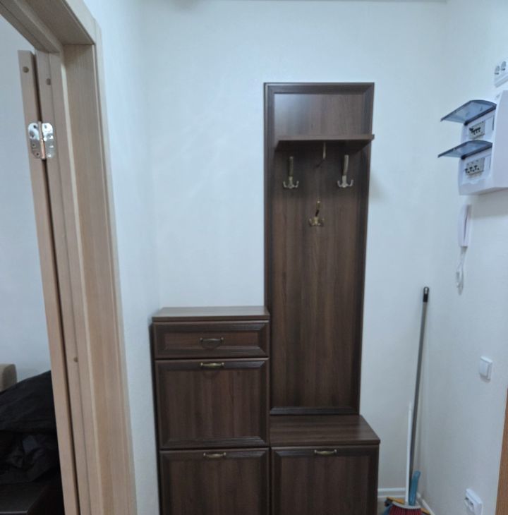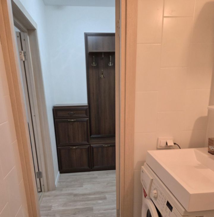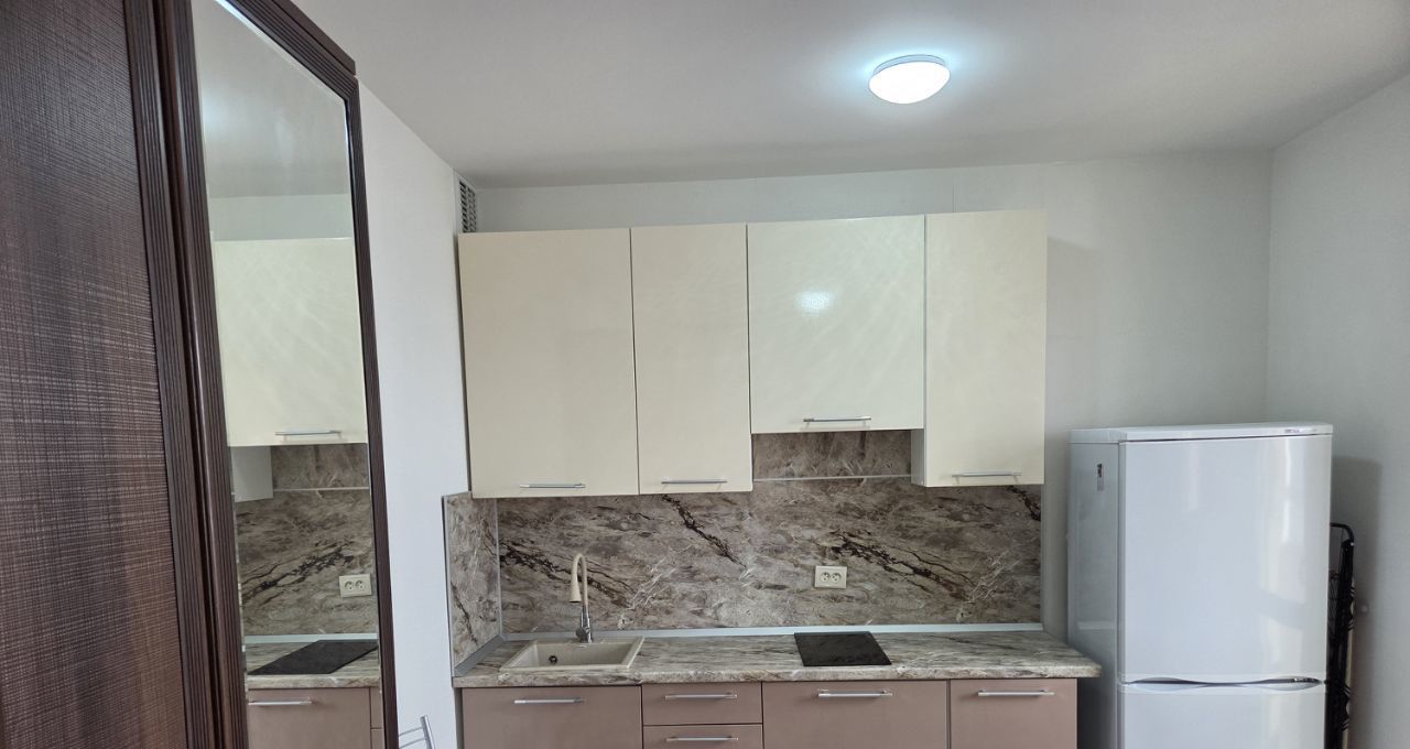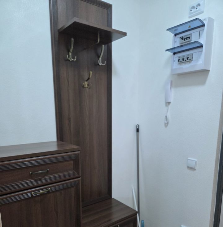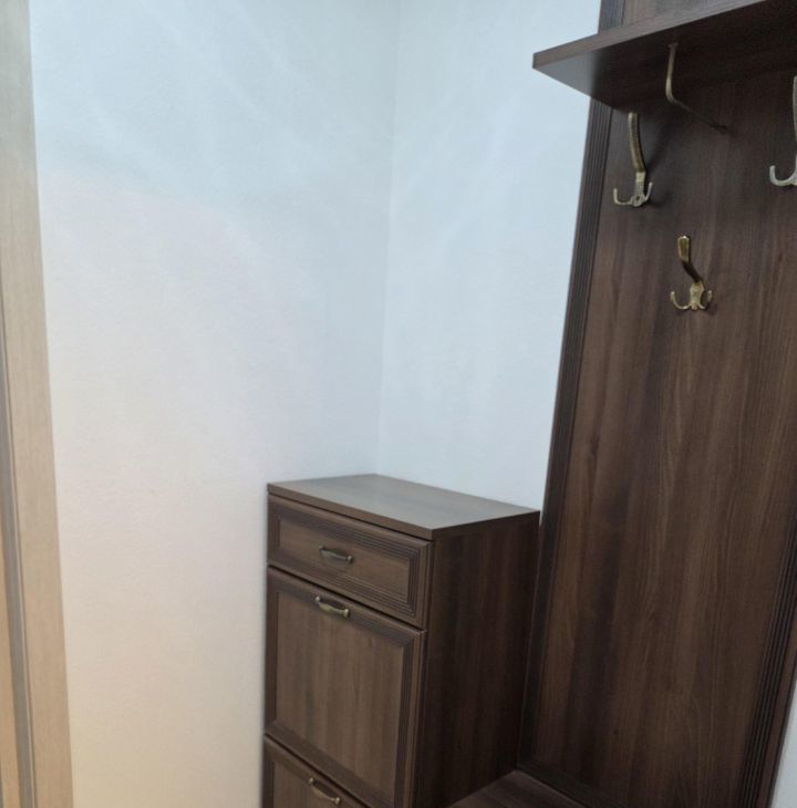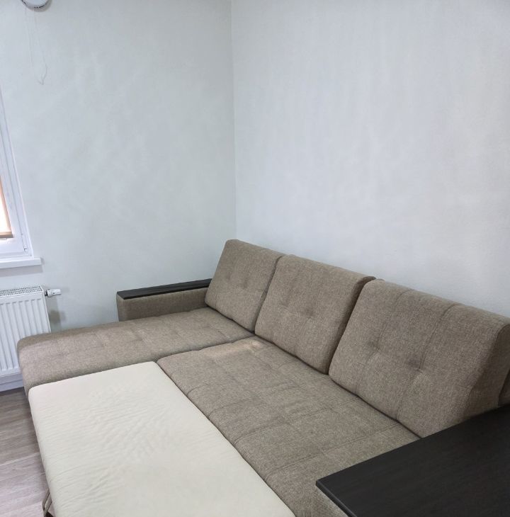 В квартире есть все необходимое для проживания. Встроенная кухня с варочной панелью, 2- камерный холодильник, угловой 2- спальный диван, шкаф для одежды, стол, стулья, TV. Есть гладильная доска, сушилка для белья. Сан. узел совмещенный, душ, стиральная машина- автомат. В коридоре вешалка для верхней одежды.