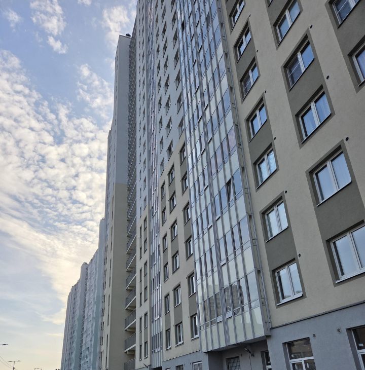 Новая студия недалеко от Муринской дороги, 20 минут траспортом от ст. метро Гражданский пр. и ст. метро Девяткино. В пешей доступности остановка автобусов, 11 магазинов, школа, во дворе детская и спортивная площадки. Дом 2023г. постройки, потолки 2,7м, большая застекленная лоджия. Солнце во второй половине дня.