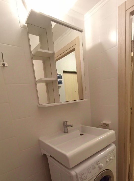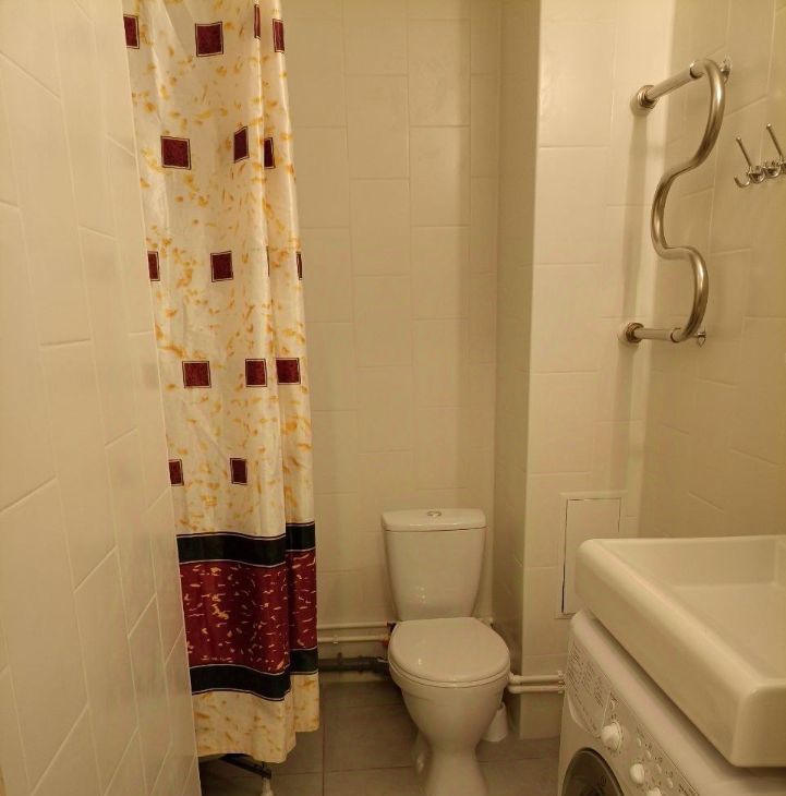 В ванной комнате для удобства установлена небольшая ванная, стиральная машина находится в ванной комнате, что обеспечит вам полную тишину во время стирки.