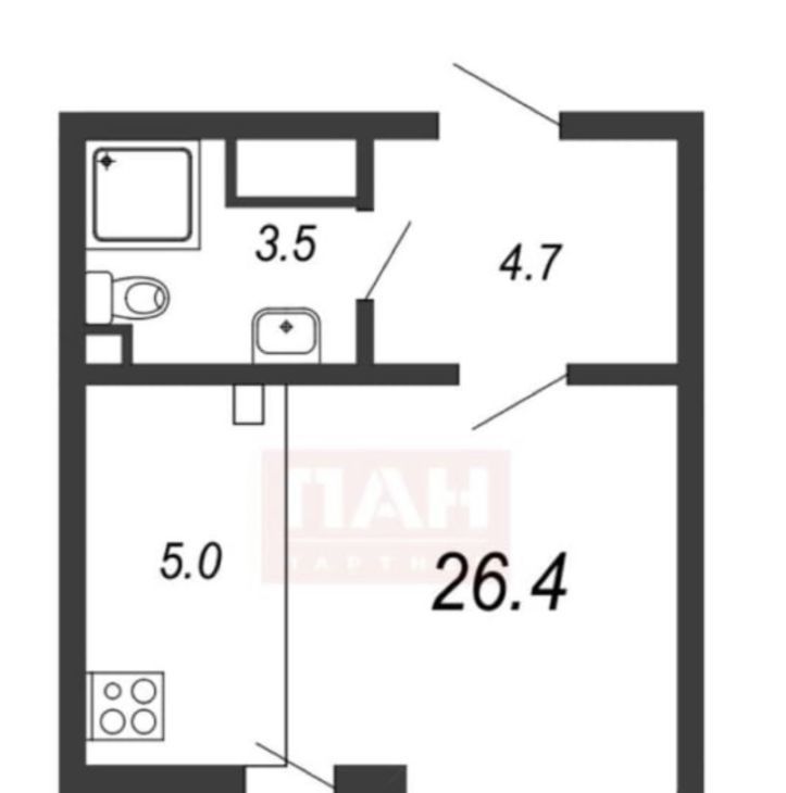 Студия Санкт-Петербург ул. Чарушинская, 24к1 (28.0 м²)