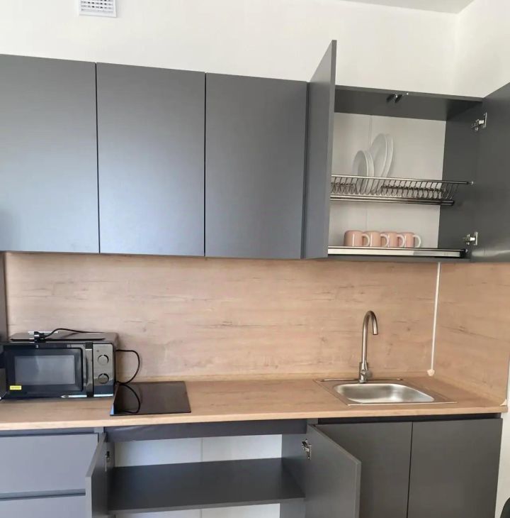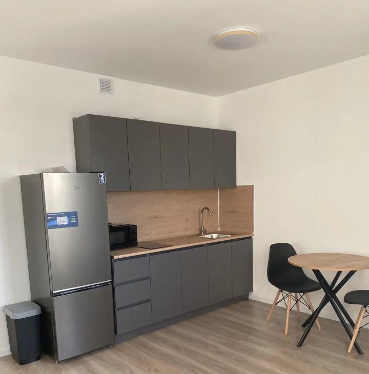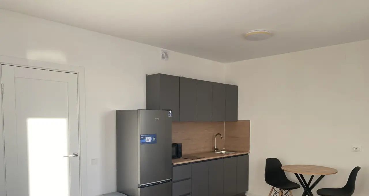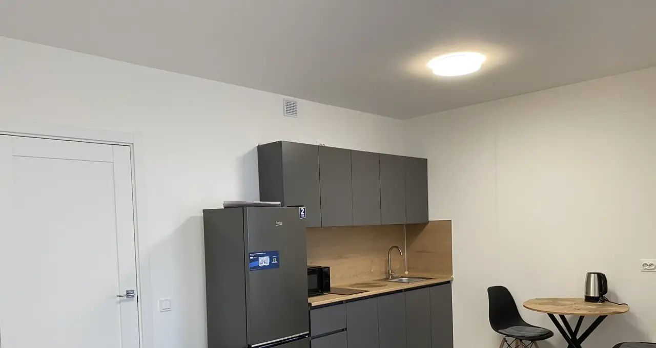 Студия абсолютно новая, с качественным чистовым ремонтом, полностью обустроена мебелью и техникой. В ней еще никто не проживал, вы будете первым жильцом.