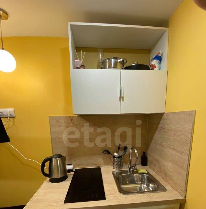 • Мини-кухня с варочной панелью, раковиной и посудой