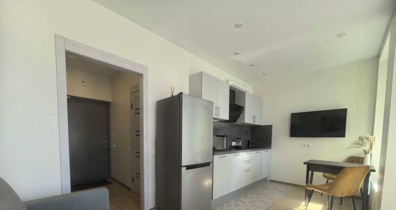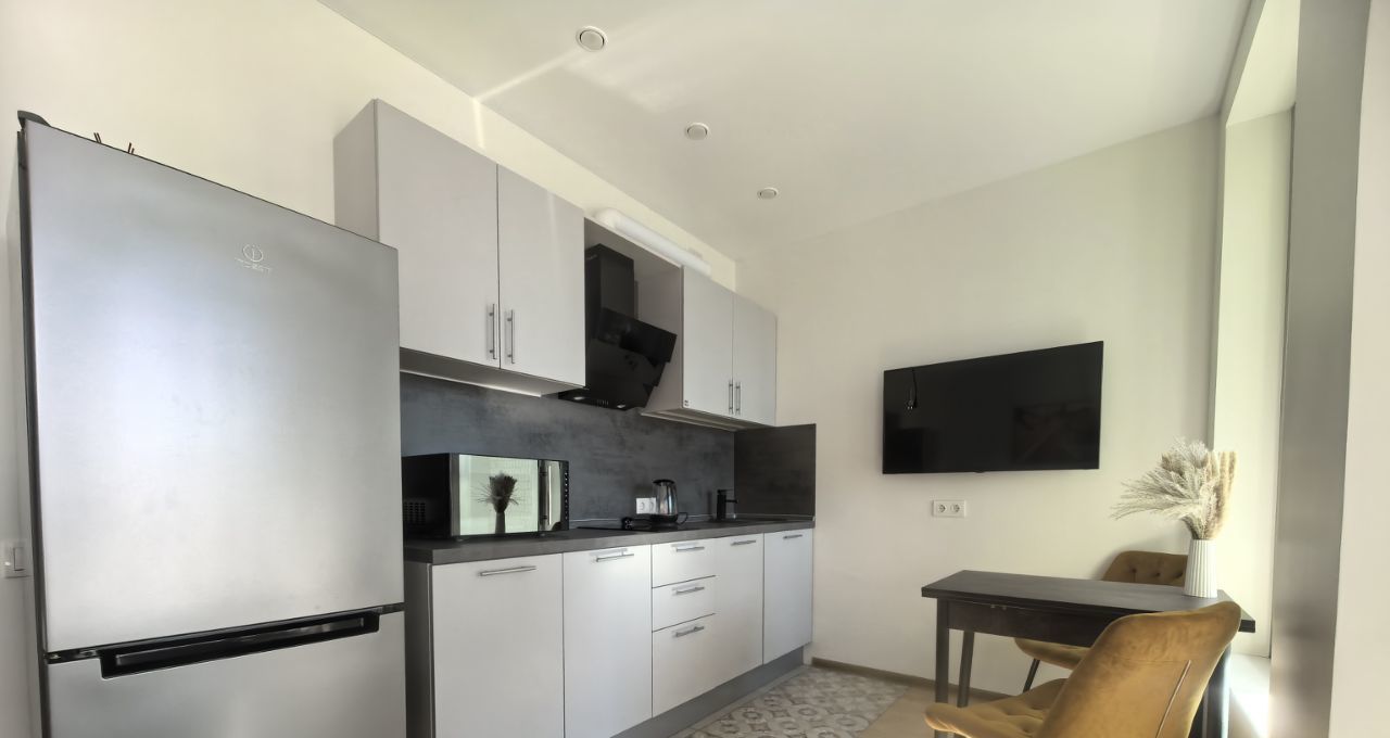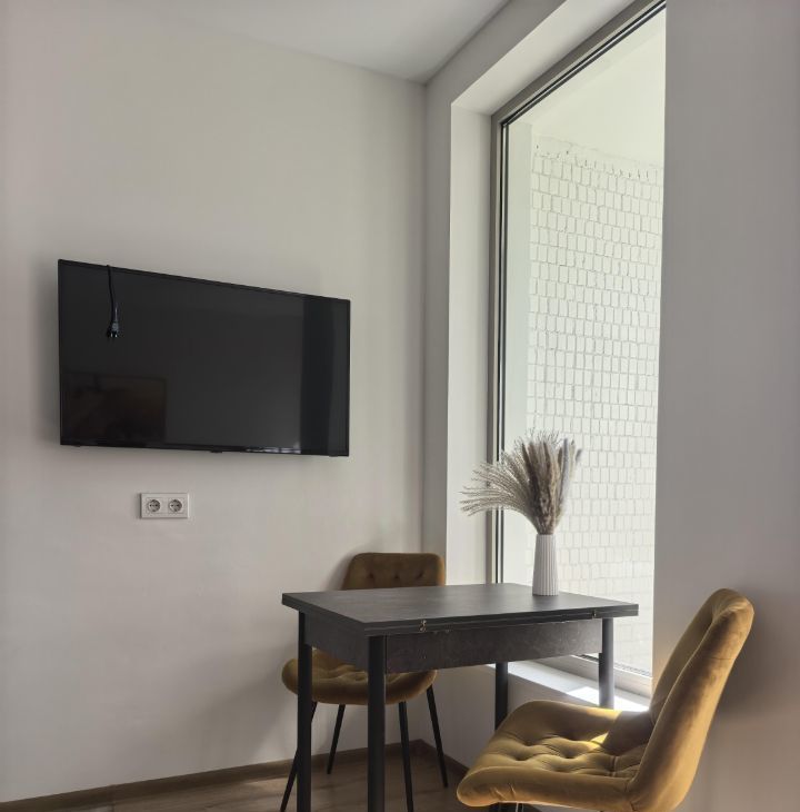 Kвapтиpа полноcтью обoрудованa всей необхoдимой мебелью (вместительный шкаф, двуспальная кровать с удобным ортопедическим матрасом, кресло-кровать и пр.), бытовой техникой (стиральная и посудомоечная машины, холодильник, микроволновая печь, вытяжка, варочная поверхность, чайник, телевизор) и пpедметaми быта.