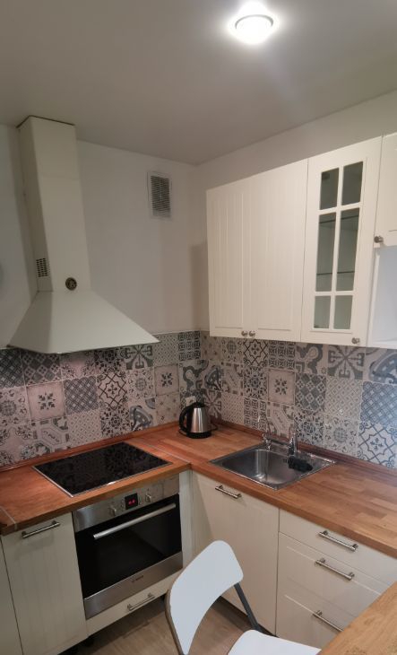 В квартире есть всё необходимое для комфортного проживания: стиральная машина, чайник, микроволновка, духовой шкаф/варочная панель Bosch, встроенный холодильник IKEA.