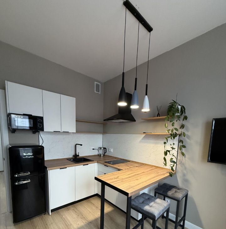 Вся мебель и техника новые - удобная большая кухня, холодильник, варочная панель, посудомоечная машина, СВч, чайник, вытяжка, смарт тв и стиральная машина. Встроенный фильтр питьевой воды.