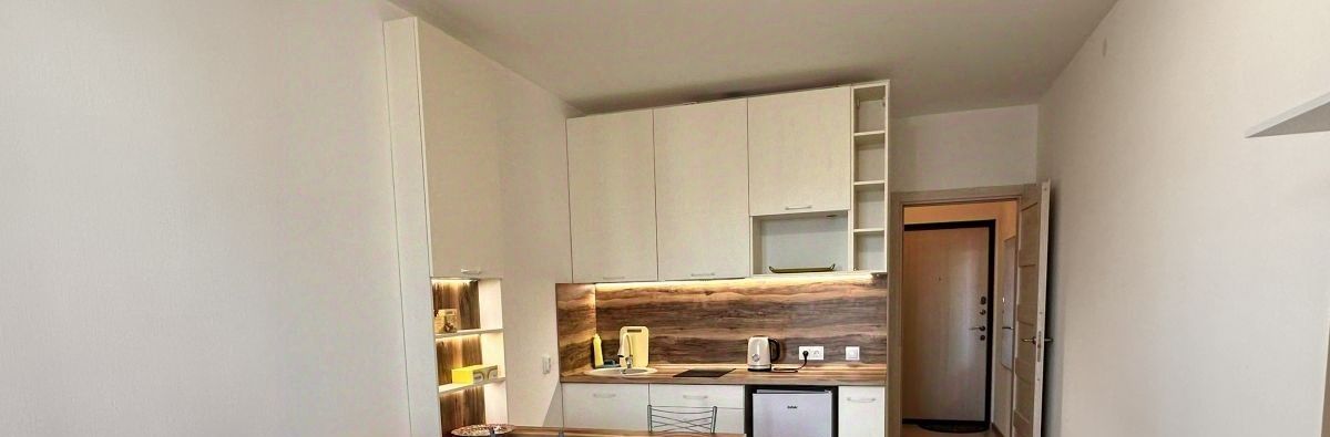 Сдается уютная студия в новом доме! в ЖК Солнечном городе огороженная территория Квартира находится на 7-м этаже 8-этажного монолитного дома, построенного в 2021 году. Общая площадь квартиры составляет 25 кв. м, жилая площадь — 16 кв. м, площадь кухни — 4 кв. м. Окна выходят во двор, поэтому в квартире тихо и спокойно.Без животных