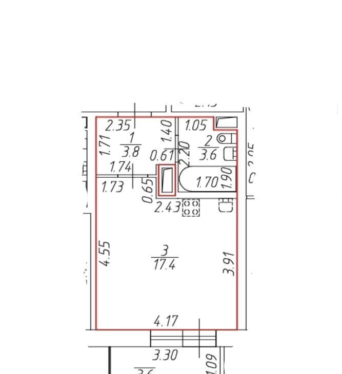 Студия Санкт-Петербург ул. Ивинская, 5к1 (24.8 м²)