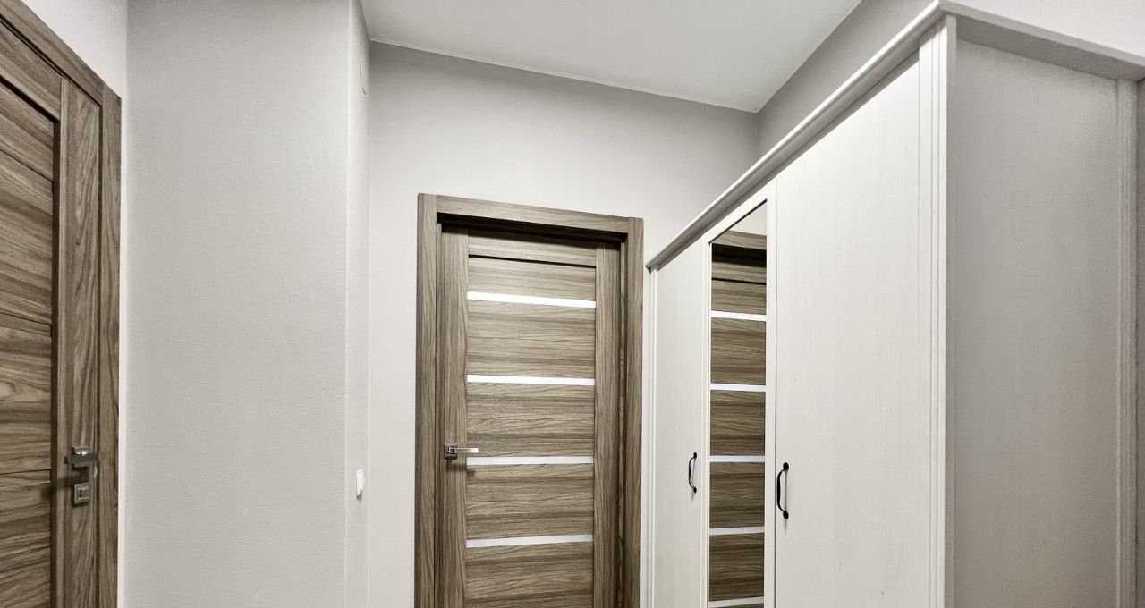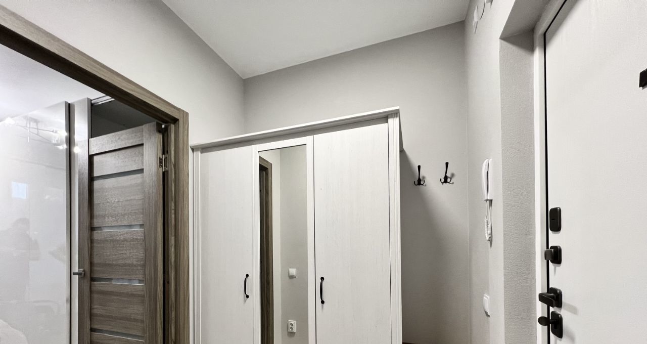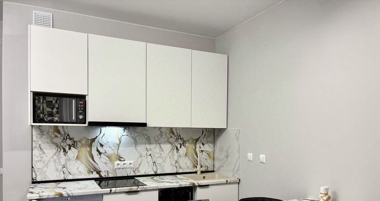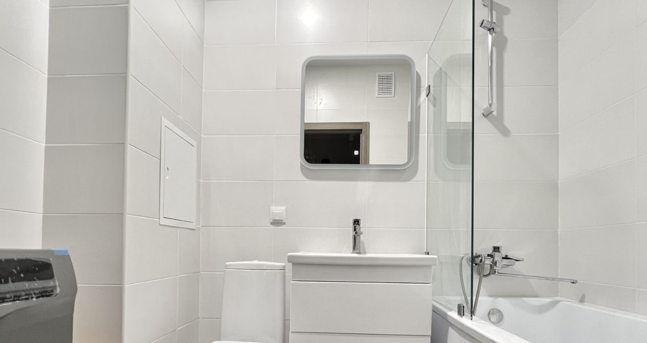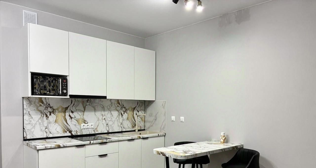 Квартира с современным ремонтом в светлых тонах, оснащена всей необходимой мебелью и техникой. Кухонный гарнитур, варочная панель с вытяжкой, встроенная посудомоечная машина и холодильник, микроволновая печь. В качестве спального места раздвижной диван. Два шкафа, один в комнате, другой в прихожей. Совмещенный санузел с ванной. Стиральная машина. Из комнаты выход на застекленную лоджию, вид в сторону Лахта центра.
