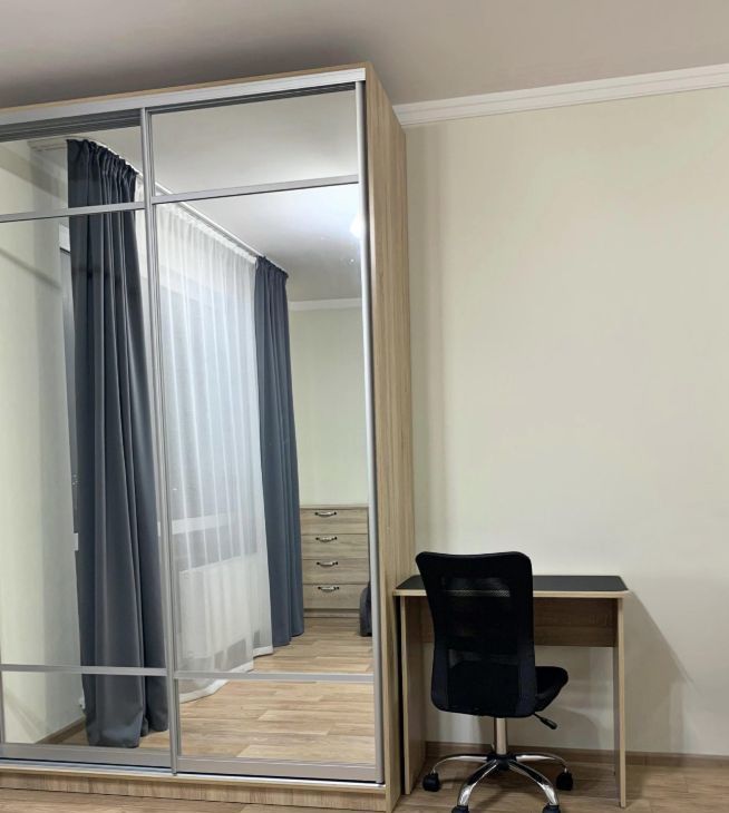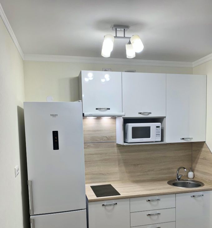 В квартире сделан евроремонт. Вся мебель и техника остаются будущему владельцу, кроме обувницы. На входной двери установлен современный видеоглазок. Совмещенный санузел оснащен качественной сантехникой. Просторная кухня-гостиная со всей необходимой для жизни мебелью и техникой. Из комнаты есть выход на застекленный балкон с видом во двор.