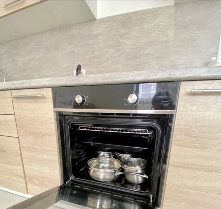 Ламинат, кафель, теплые полы в ванной, душевая кабина, застекленный балкон, стиральная машинка, холодильник, плита, духовка, микроволновка, посуда, 2 спальных места, есть места для хранения, 3 шкафа, ящики под кроватью. Всё есть для комфортного проживания.