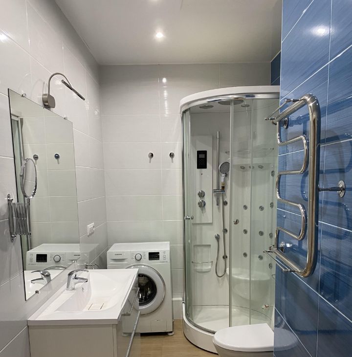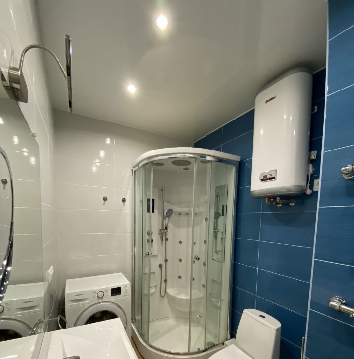 Квартира продается частично меблированная и с сантехникой. Из мебели: кухня со встроенной техникой (двухкамерный холодильник, духовой шкаф, варочная поверхность на 2 конфорки, вытяжка с угольным фильтром), платяные шкафы, встроенный шкаф-купе в прихожей, тумба под раковину в ванной комнате, душевая кабина, стиральная машина, накопительный водонагреватель на 50 л.