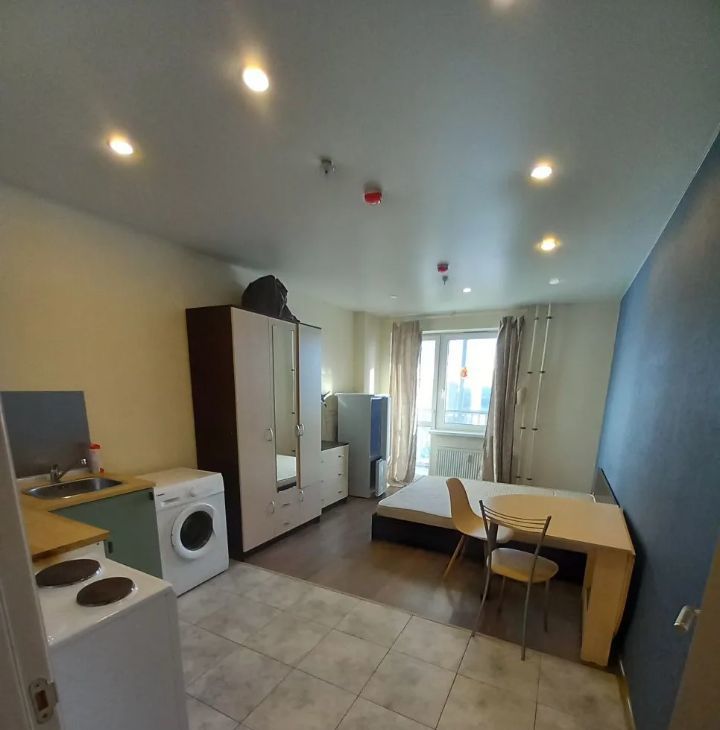 Студия сдаётся на длительный срок. Гости из СНГ, добро пожаловать. Фото и видео свежие. Меблировка рассчитана на одного человека или семейную пару. Спальное место, кровать, шириной 160см. Бытовая техника: холодильник, стиральная машина, плита с духовкой. Для хранения вещей шкаф и комод. Оплата 26000+КУ. Дом имеет статус апартаментов, поэтому коммунальные платежи выше , чем в обычном доме примерно на 1500р. Летом около 5000р, зимой около 6500р. Залог 100%, комиссии нет.