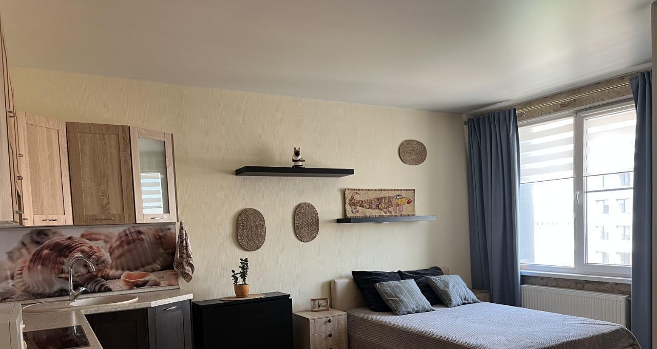 Сдается уютная студия площадью 29.1 кв. м в современном монолитном доме 2017 года постройки. Квартира расположена на 12-м этаже 16-этажного здания, что обеспечивает прекрасные виды из окон, которые выходят как на улицу, так и во двор.