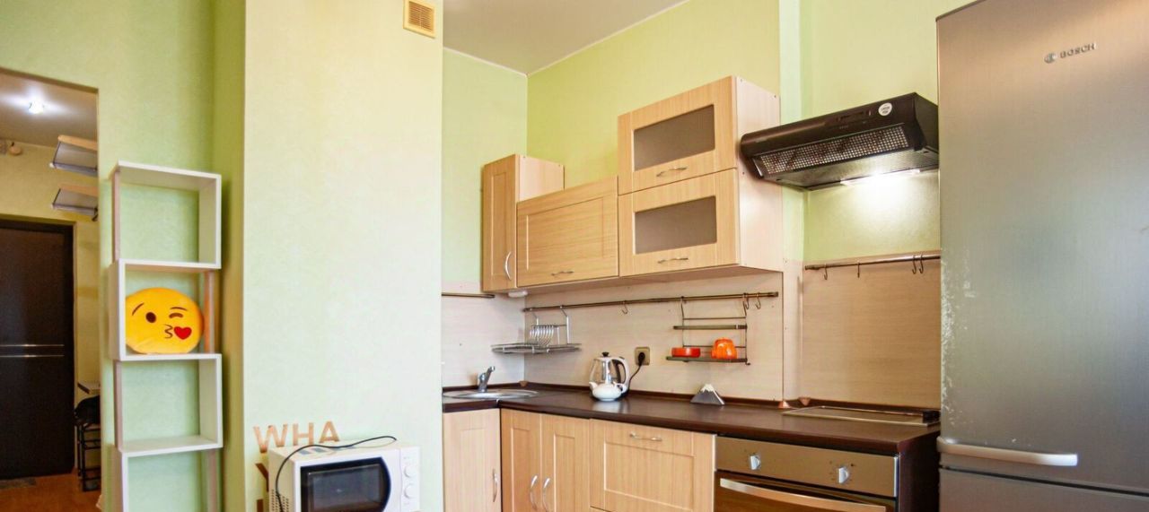 Квартира оборудована всем необходимым для проживания - шкаф-купе, рабочее и спальное место; кухонный гарнитур с полноценной духовкой и вытяжкой; обеденный стол; телевизор; посуда; микроволновка; сушилка для белья; утюг и чайник, пылесос. Есть дополнительные места для ручной клади/хранения вещей/одежды в прихожей.