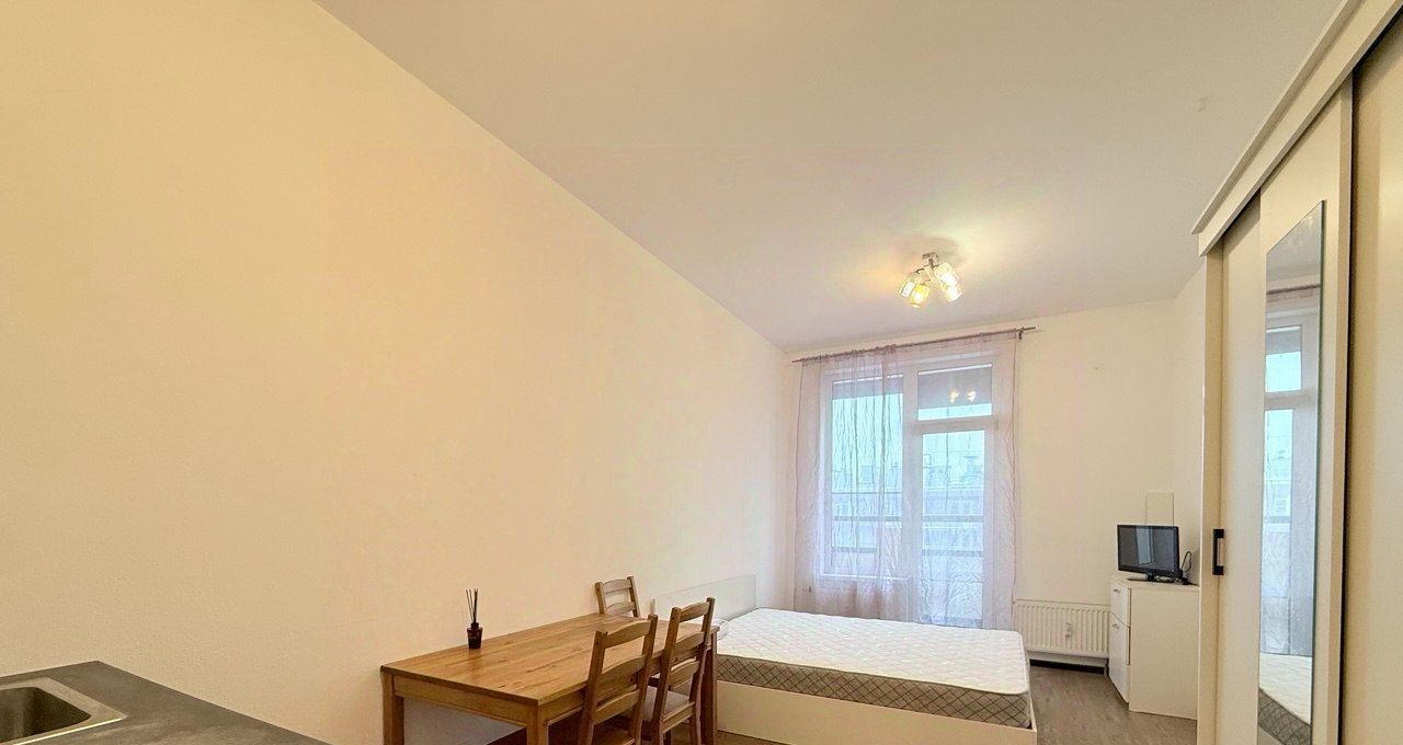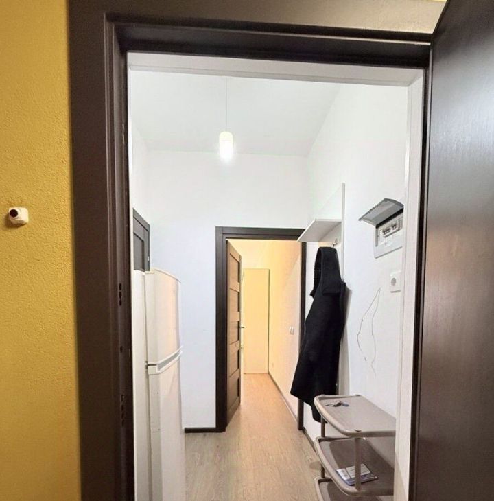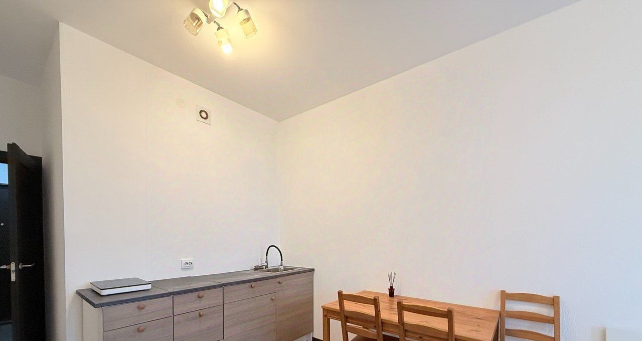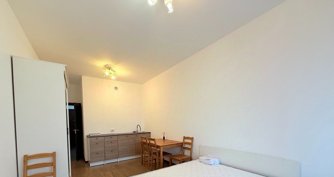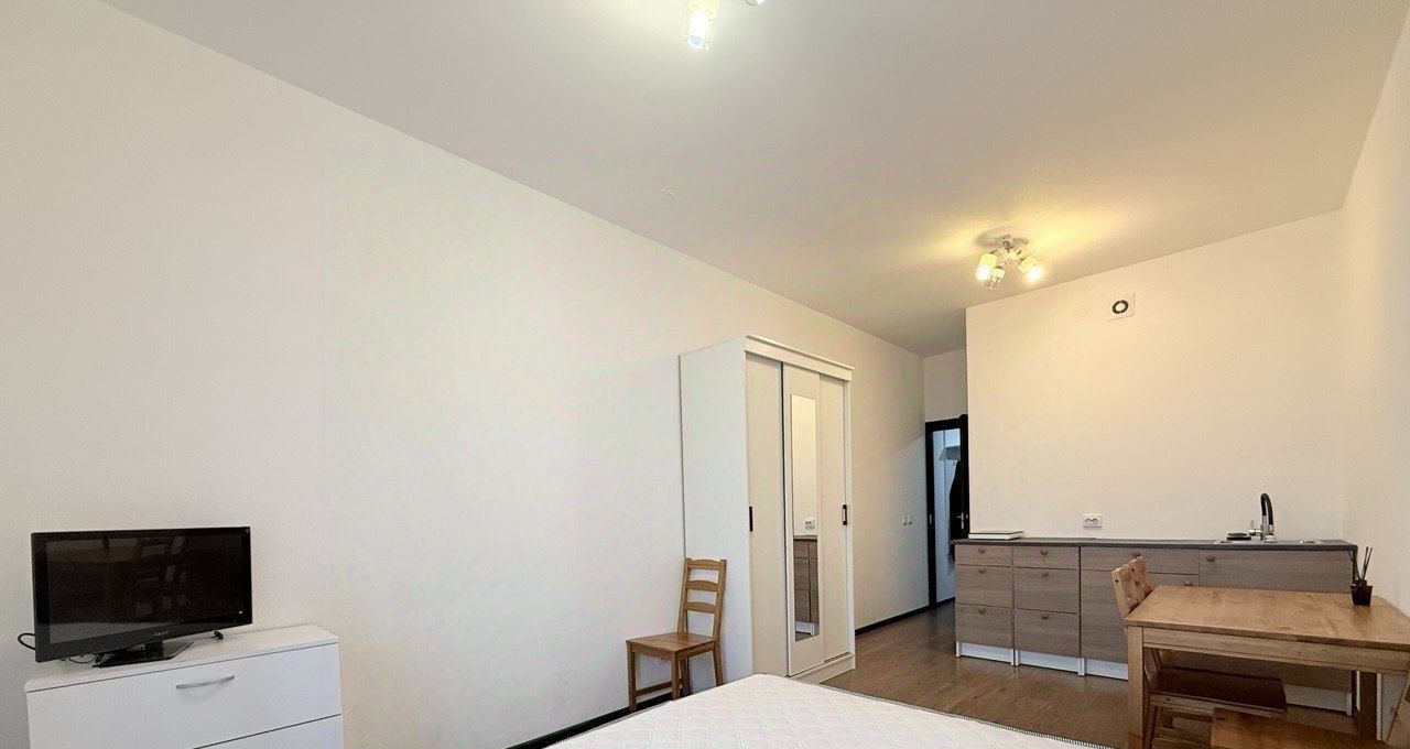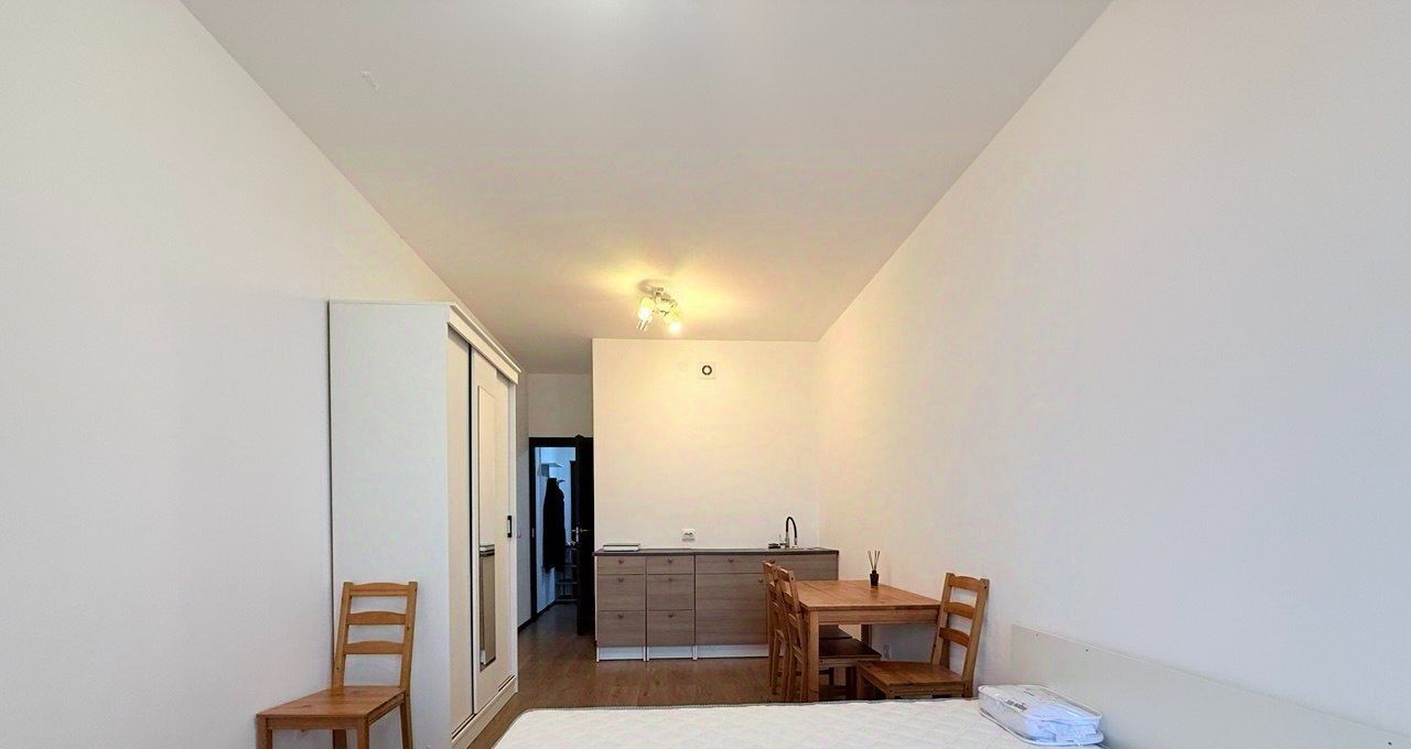 + Хорошая для студии планировка: просторная зона кухни и комнаты, достаточно большой с/узел, есть отдельная ниша под стиральную машину.
