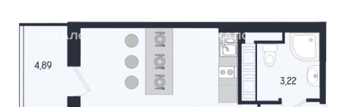 - большая лоджия 5 кв.м. (её площадь не включена в общую площадь студии);