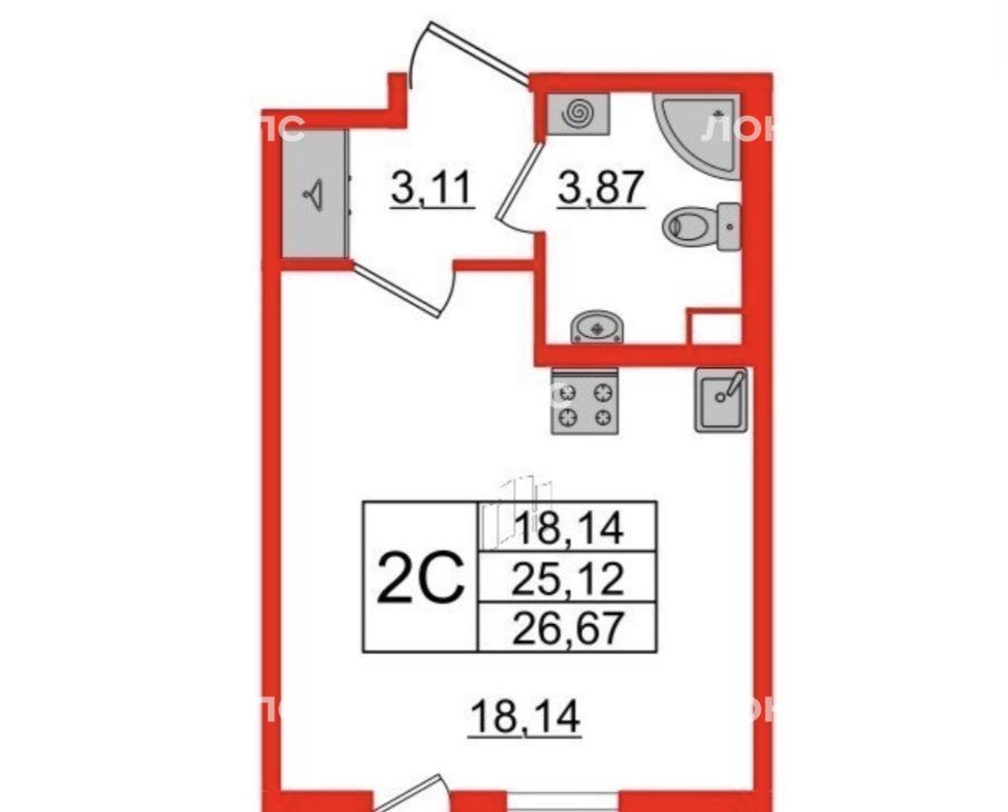 Студия Санкт-Петербург ул. Лидии Зверевой, 6 (26.67 м²)