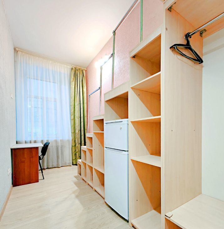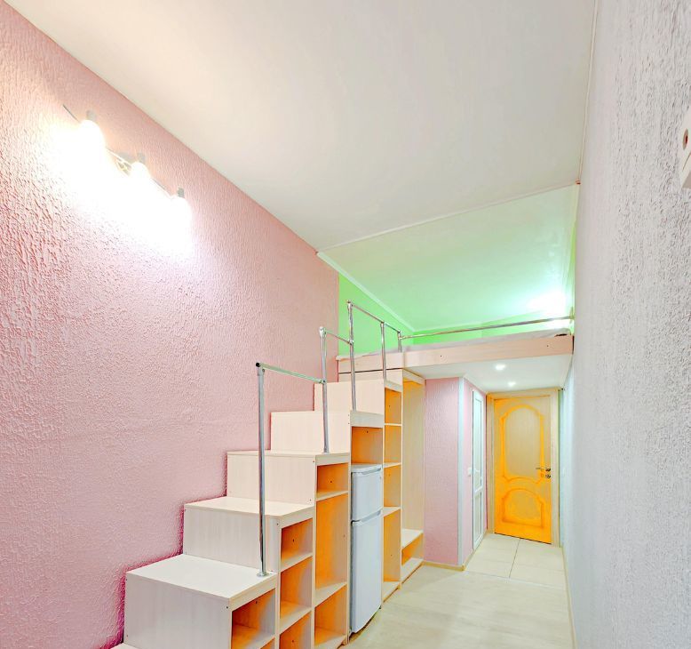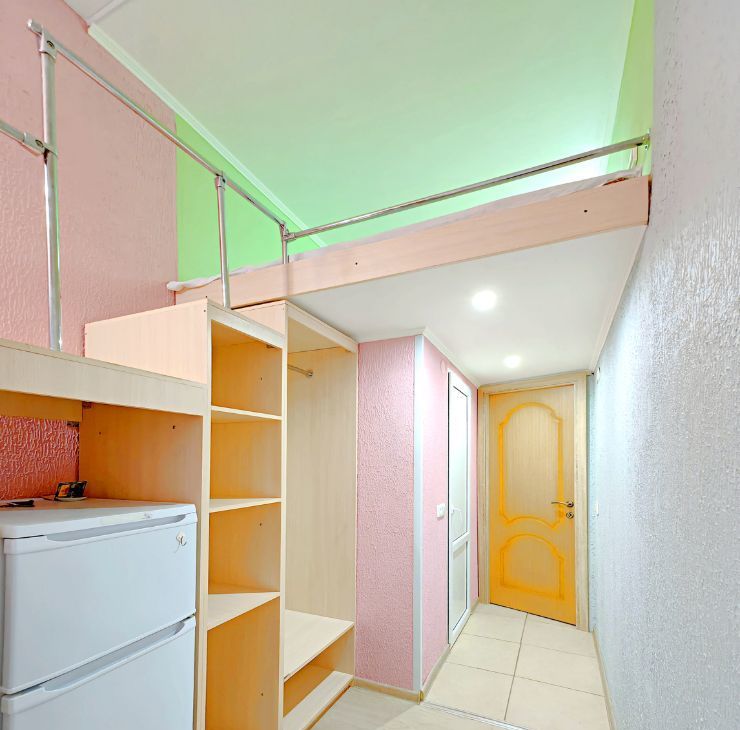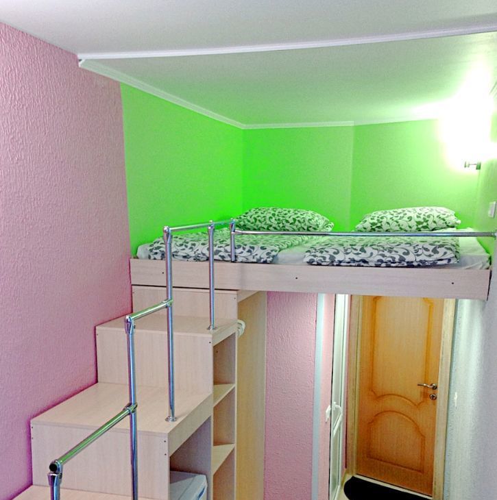-Евроремонт, большая кровать наверху, внизу стол+стул, места для хранения, холодильник.