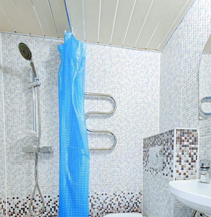 -Санузел с душевой кабиной и туалетом.