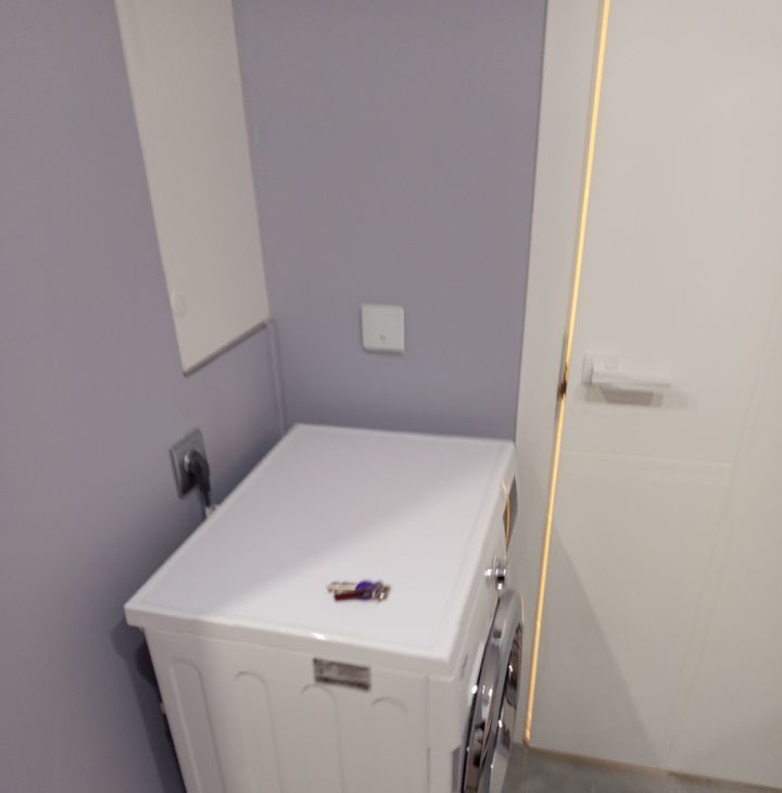 - имеется всё необходимое для проживания: плита, холодильник, стиральная машина, гладильная доска ;