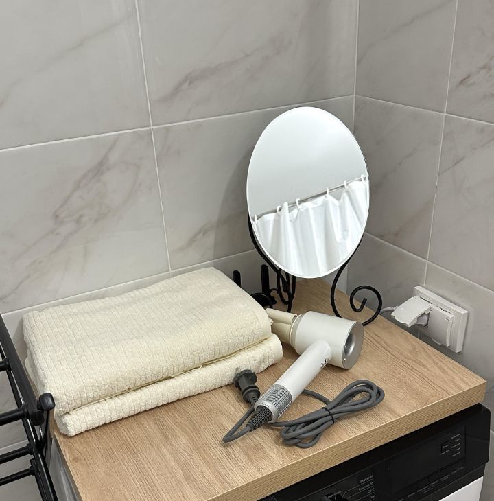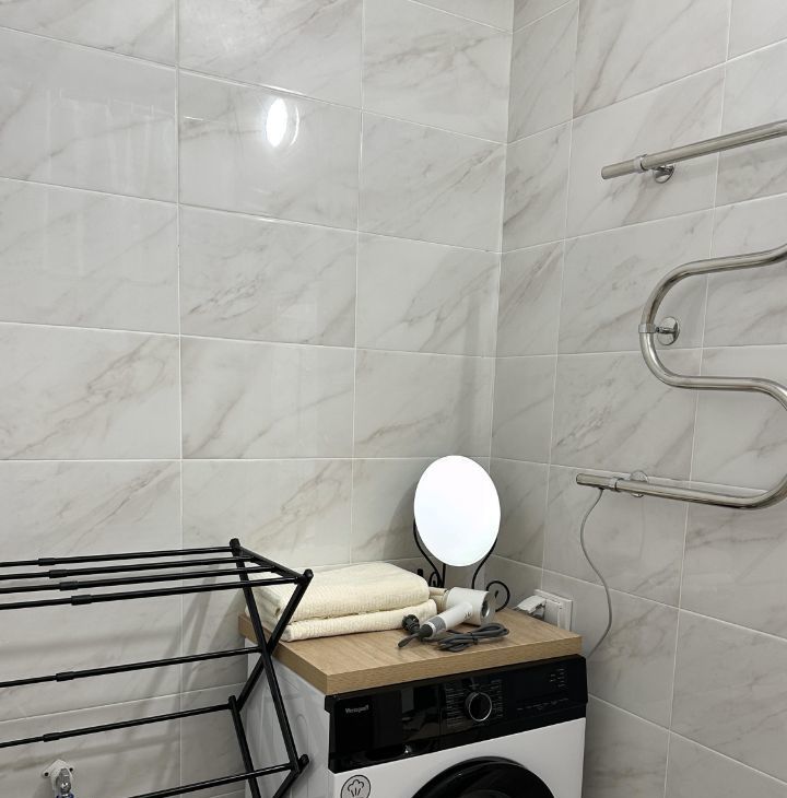 В квартире есть спальная зона с удобной кроватью 140 см, с новым качественным матрасом. Телевизор smart . Кухонная зона с варочной панелью, духовым шкафом, микроволновой печью, всей необходимой посудой. Круглый стол, который может быть обеденным или рабочим. В ванной предусмотрены гигиенические принадлежности, полотенца, фен, стиральная машина и сушилка для белья.