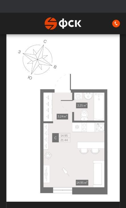 Студия Санкт-Петербург ул. Матроса Железняка, 1А (21.44 м²)