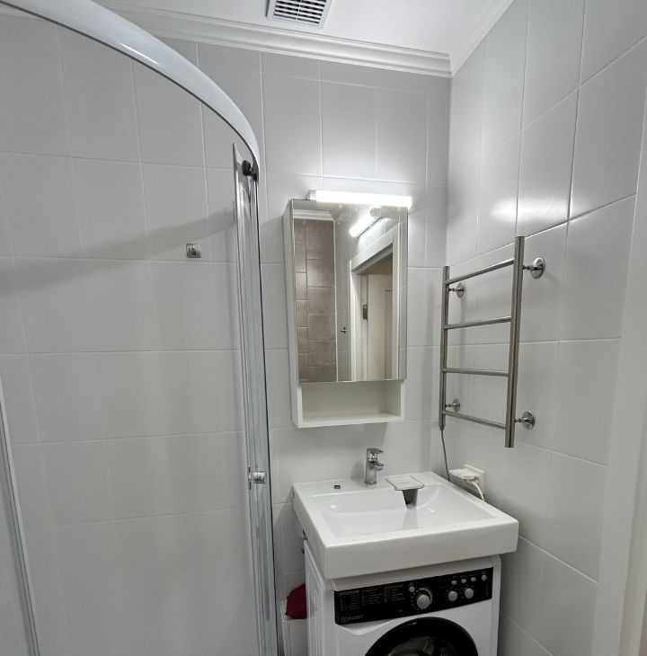 Квартира с качественным евроремонтом. В студии есть вся необходимая мебель и техника (духовка, варочная поверхность, вытяжка, холодильник, стиральная машина и чайник). Совмещенный санузел оборудован современной душевой кабиной. Окно выходит во двор, в квартире тихо и спокойно, второй этаж не зависите от лифта (их всего 3 на 22 этажа).