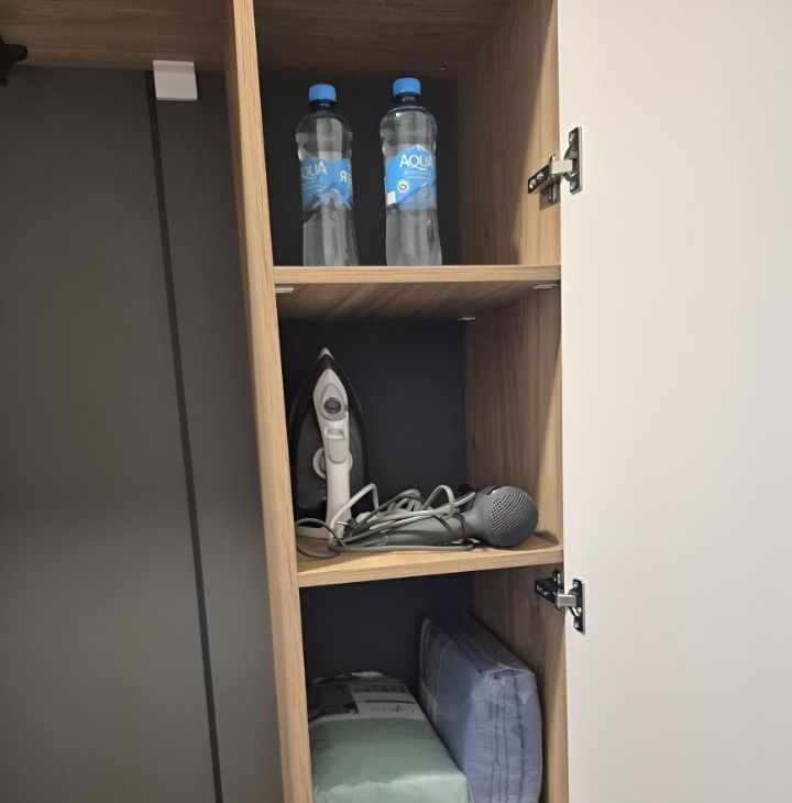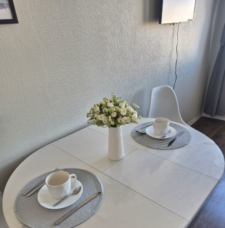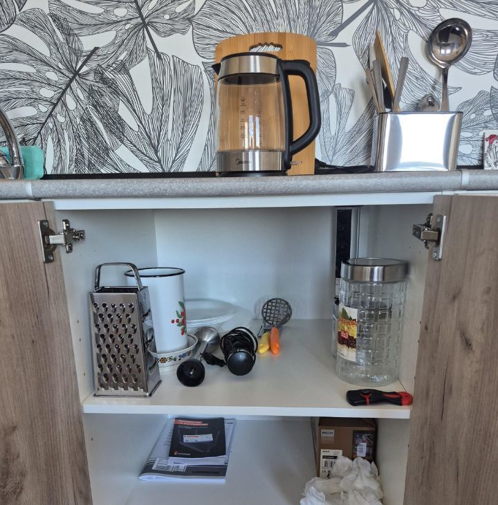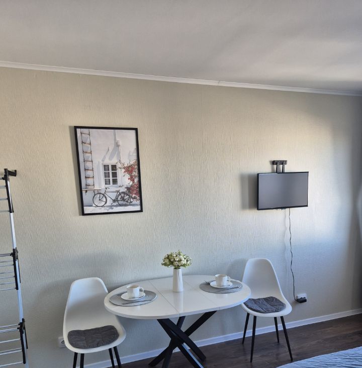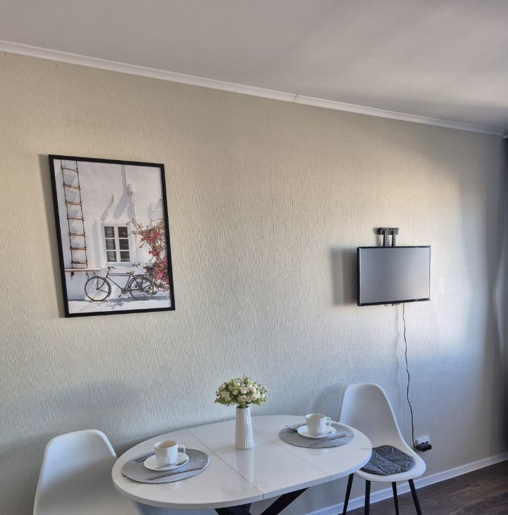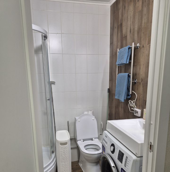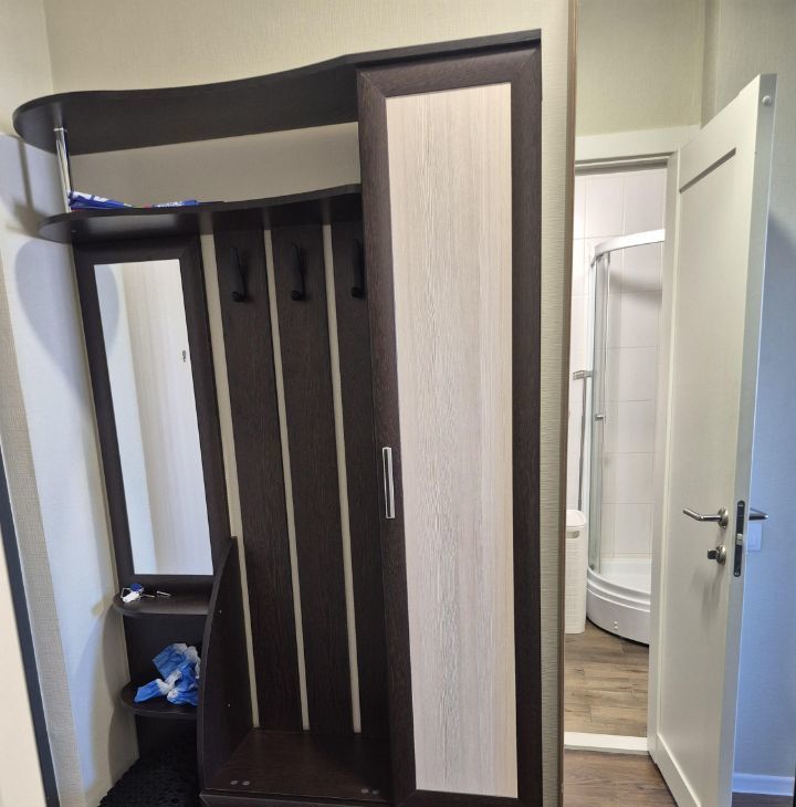 Квартира с евроремонтом, полностью готова для комфортного проживания. В квартире есть вся необходимая техника: холодильник, стиральная машина, телевизор (смарт, с доступом в итернет), утюг, фен, миксер, чайник, микроволновая печь. Вам ничего не придется покупать, в наличии 2 комплекта постельного белья, полотенца, гладильная доска, компактная и вместительная сушилка для белья, электрический полотенцесушитель. Посуда есть вся: кастрюли, сковорода и вся прочая кухонная утварь, которая нужна на кухне. Мебель установлена как на кухне, так и в комнате: вешалка у входа, вместительный шкаф, комод, а в ванной комнате предусмотрена душевая кабина. Планировка студии позволяет рационально использовать пространство, создавая уютную атмосферу для жизни.