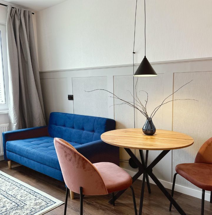 Дизайн выполнен в современном стиле, при необходимости вы можете расставить свои акценты. В квартире есть вся мебель и техника для комфортного проживания (раскладной диван, варочная поверхность, микроволновая печь, стиральная машина, вместительный шкаф и комод.