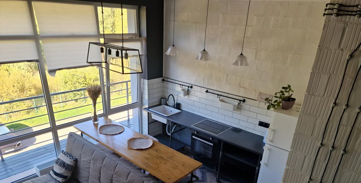 Стильная студия с дизайнерским ремонтом на третьем этаже кирпичного дома 2015 года постройки. В квартире есть все необходимое для комфортного проживания: холодильник, стиральная машина и телевизор. Кухня с духовкой и обеденной зоной. Из окон открывается живописный вид на лес.