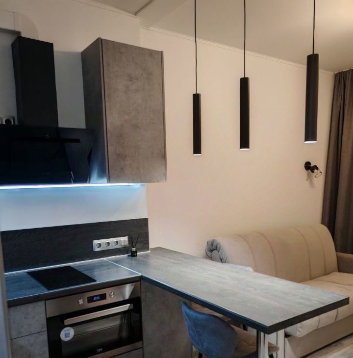 В квартире есть все необходимое: холодильник, стиральная машина, варочная панель, духовой шкаф, кухонные приборы, диван с удобным матрасом, стулья. На окнах шторы блэкаут.