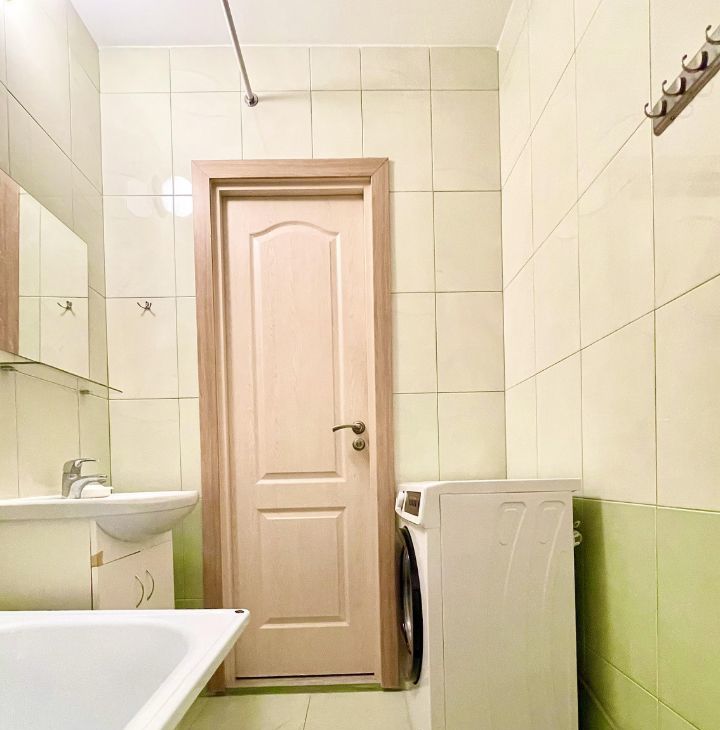 Стеклокерамическая плита, микроволновка, двухкамерный холодильник, чайник, посуда, телевизор HD, стиральная машина, сушилка для белья, утюг, плечики для одежды, фен, стабильный высокоскоростной WI-FI, современная сантехника (большая ванна), шторы блэкаут, диван-кровать 140*200 Икея с удобным ортопедическим матрасом, подушка, одеяло. Комод Икея из массива сосны.