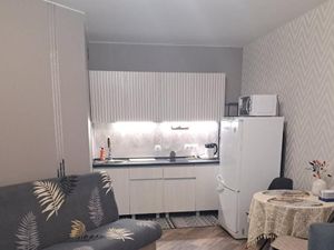 Квартира в отличном состоянии, выполнен качественный евроремонт. Пространство студии продумано до мелочей, что делает ее уютной и функциональной. Есть лоджия, где можно обустроить зону отдыха. Санузел совмещенный и оформлен в современном стиле. В квартире есть все необходимое для комфортного проживания, включая современную мебель и бытовую технику.