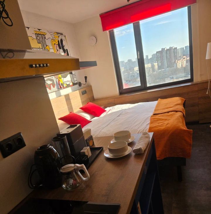 Мультимедиа: WI FI , телевизор, рабочая зона с настольной лампой, вешалка для верхней одежды и полноценный шкаф, рулонные шторы , мягкая подсветка. Бытовая техника:встроенный кондиционер, плита, холодильник, микроволновая печь, капсульная кофеварка, чайник,посуда для приготовления и приема пищи.Предоставляется : постельное белье, полотенца, халаты, средства гигиены, фен. В студии нет стиральной машины,но на нашем 14 этаже есть большая прачечная самообслуживания с стиральными и сушильными машинами,гладилкой. Внизу обширный лобби, круглосуточный бар в котором можно заказать еду и любые напитки,выпить кофе. Много фотолокаций, рабочих зон. Место встреч прогрессивной молодежи и деловых людей. В отеле мощная комьюнити-команда. Если вам станет скучно-не проблема.Добро пожаловать в большую семью "Вертикаль" Единомышленников можно найти всегда. Есть чат жильцов,постоянно проводятся мероприятия,есть небольшой спортзал(бесплатно),кинозал и.т.п. Очень много людей проживают постоянно. Сейчас высокий сезон! Снимать на длительный срок-выгодно! Стоимость на 7 дней-14000+э\э по счетчику. 1 месяц-37000+к\у( 7-10т в мес) . На срок от 8 мес. и больше-30000+к\у. Уборка+смена белья(по желанию) за дополнительную плату. От собственника. При заселении-договор аренды с описью имущества,депозит. Свободна с 1 апреля.