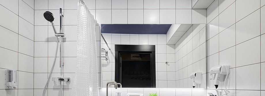 Совмещенный санузел оснащенный феном.