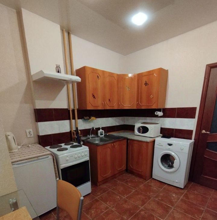 Есть всё необходимое для комфортного проживания, вся необходимая мебель и бытовая техника. Есть холодильник, стиральная машина, телевизор, микроволновая печь, электрочайник.