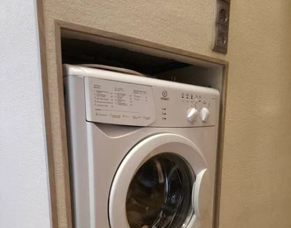Стиральная машина, холодильник, микроволновка, фен, утюг, гладильная доска, чайник, посуда