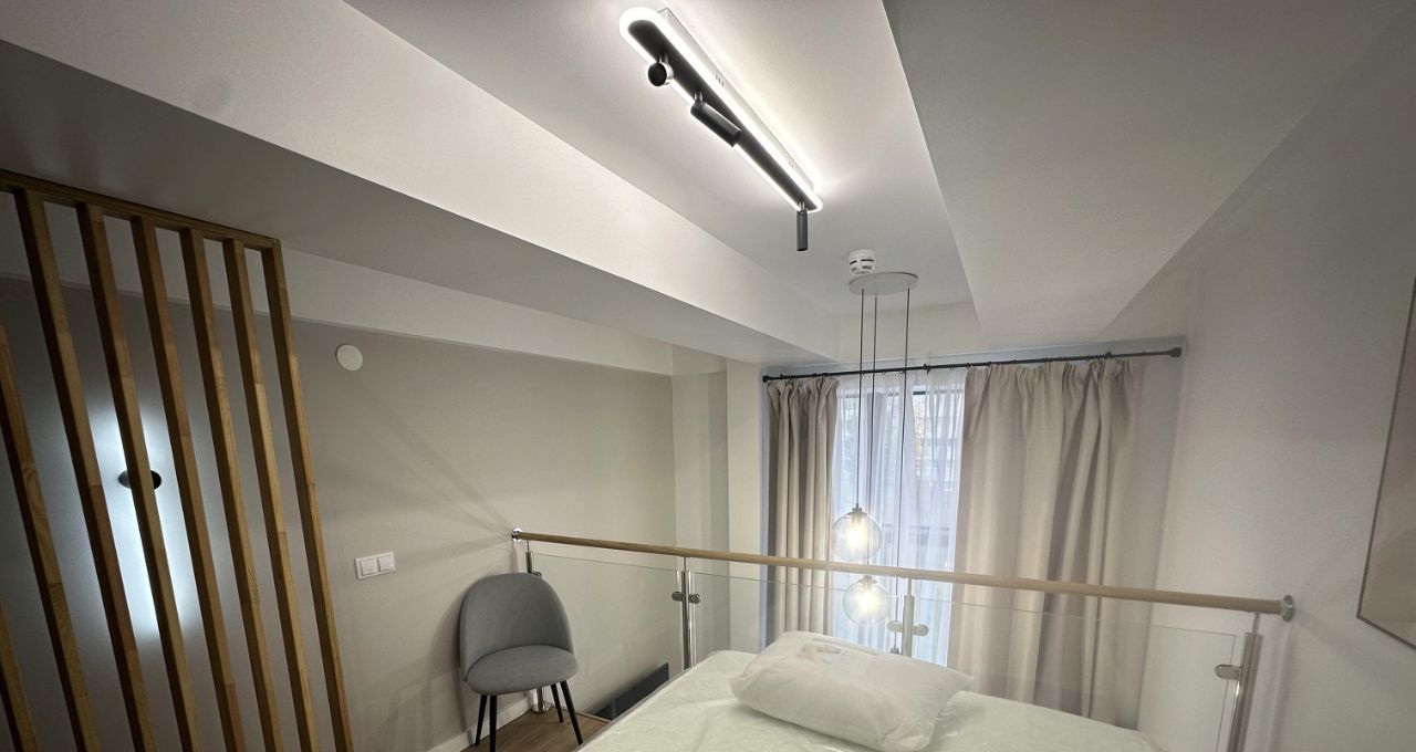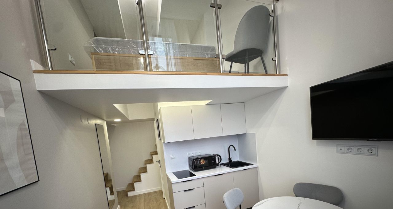 Студия оборудована всем необходимым для комфортного проживания. В ней есть современный ремонт, компактная кухня с мебелью, а также удобная зона отдыха. В наличии вся необходимая техника: холодильник, телевизор и стиральная машина. В ванной комнате установлена душевая кабина.
