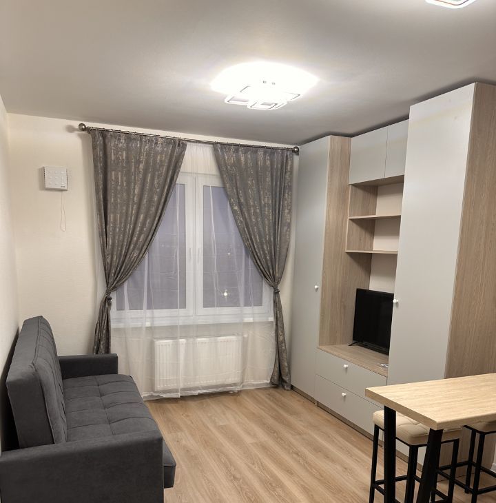 Сдаётся уютная студия в современном доме 2024 года постройки. Квартира расположена на 13 этаже 19-этажного здания. Общая площадь составляет 20 кв. м, жилая площадь — 10 кв. м, кухня — 5 кв. м. Потолки высотой 2,6 метра создают ощущение простора. Окна выходят на улицу, что обеспечивает достаточное количество естественного света.