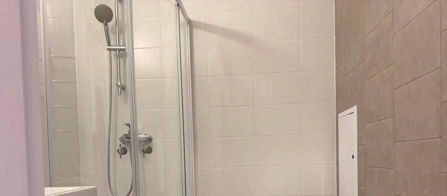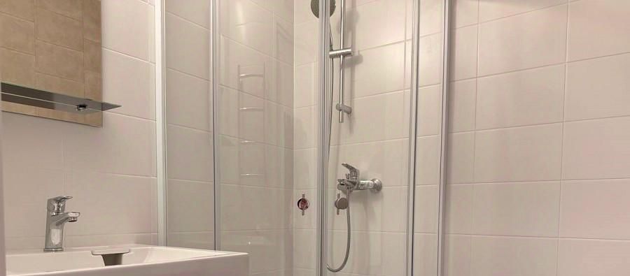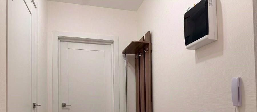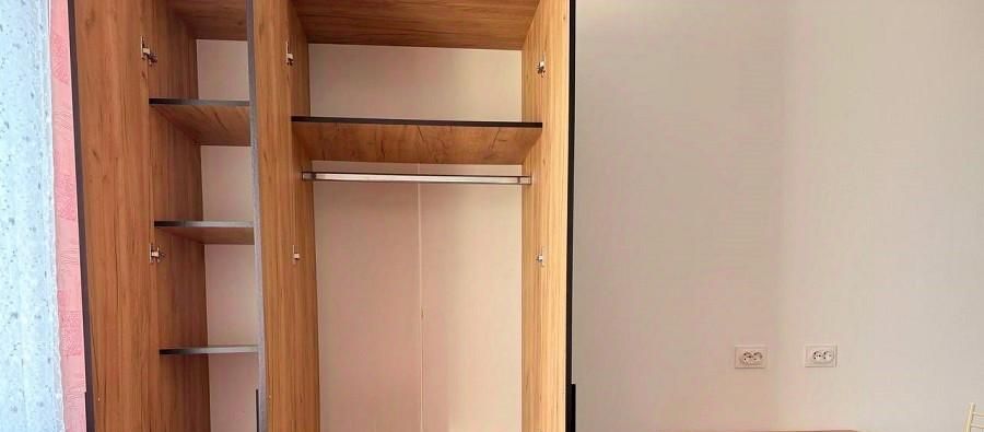 В комнате и коридоре установлены шкафы. В ванной комнате- душевая кабина и стиральная машина.