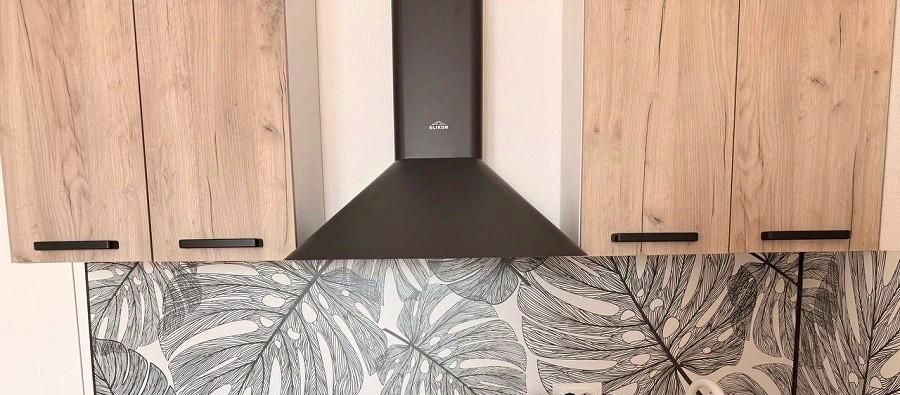 В студии выделены зона для готовки с техникой: холодильник, варочная поверхность, вытяжка, микроволновая печь, электрочайник и полноценная зона отдыха с удобным диваном.