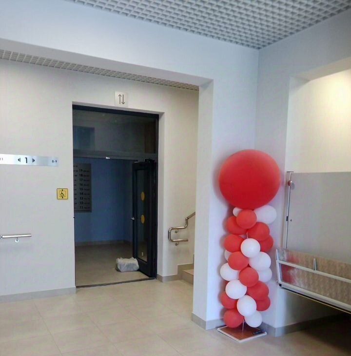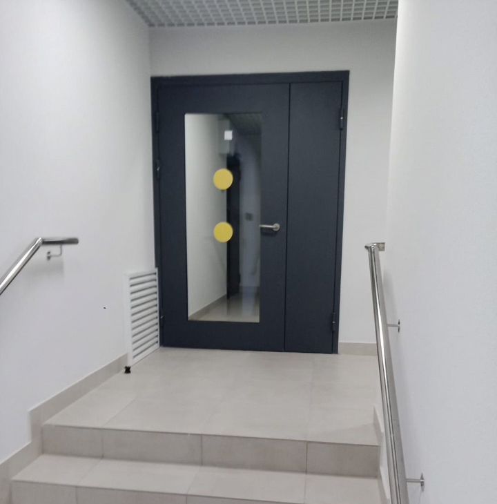 В отдельном тамбуре, всего 2 квартиры для них установлен отдельный электроподъемник для маломобильных граждан и помещение для хранения средств передвижения.