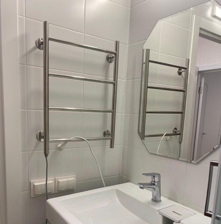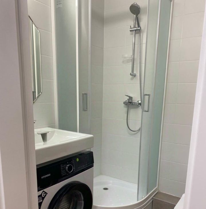 Cтиpальная машинка для Bашегo удобства и лучшей шумоизоляции располагается в ванной комнате.